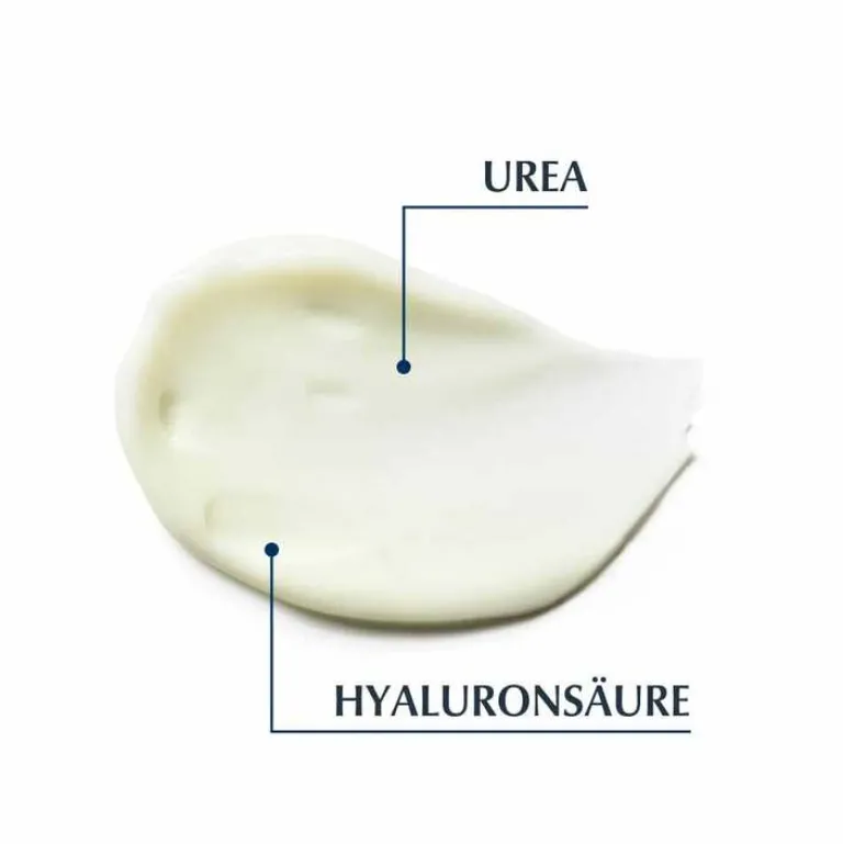 Da in der Gesichtscreme 5 % Urea mit lang- und kurzkettiger Hyaluronsäure kombiniert sind, wird die Feuchtigkeit in den oberen und tieferen Hautschichten gebunden und die Haut vor dem Austrocknen geschützt. Der enthaltene Wirkstoff Urea sorgt für eine glattere Hautoberfläche. Die Feuchtigkeitscreme verringert Falten sichtbar und bietet zusätzlich UV-Schutz. Zudem schützt sie vor lichtbedingter Hautalterung dank hohen UVA-Filtern.