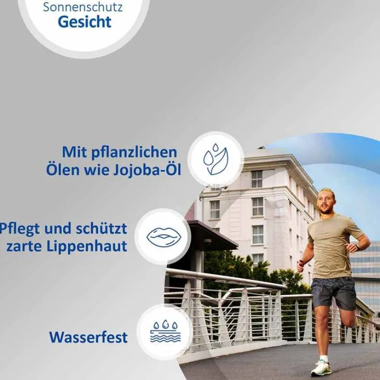Spezieller Sonnenschutz: der Ladival® Aktiv UV-Schutzstift ist wasserfest. Er bietet langanhaltenden Schutz und einen sehr hohen Lichtschutzfaktor, ideal für intensiven Sport im Freien.