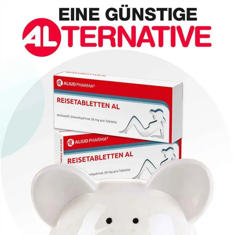 Mit der rechtzeitigen Einnahme eines dafür geeigneten Arzneimittels lässt sich den unliebsamen Beschwerden vorbeugen. REISETABLETTEN AL mit dem Wirkstoff Dimenhydrinat eignen sich sowohl zur Vorbeugung wie auch zur Behandlung der typischen Symptome der Reisekrankheit. REISETABLETTEN AL sind gut verträglich und bereits für Kinder ab 6 Jahren zugelassen. Die Tabletten sind mit einer Bruchkerbe versehen und lassen sich einfach in gleiche Dosen teilen.