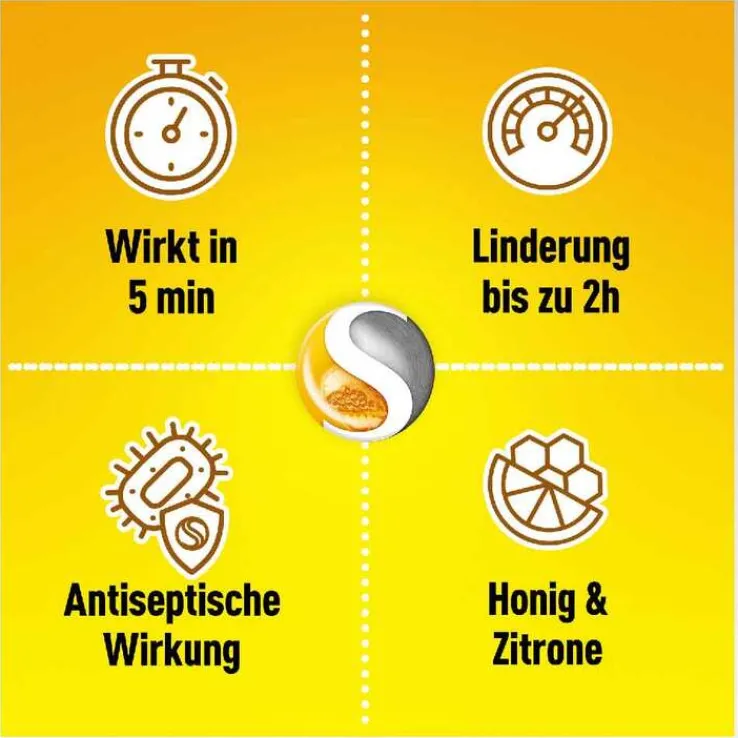Sonstige Bestandteile: Weinsäure (Ph.Eur.), Pfefferminzöl (enthält Menthol), Honig (Invertzucker), Zitronenöl, Chinolingelb (E104), Zuckersirup, Glucosesirup (enthält Weizenstärke und Schwefeldioxid (E220))