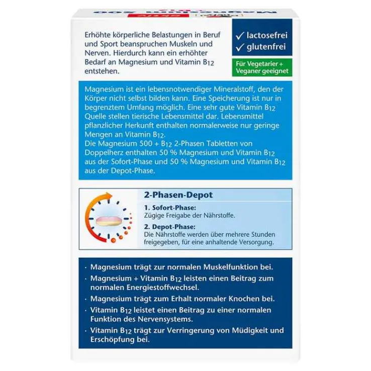 DOPPELHERZ Magnesium 500+B12 2-Phasen Depot Tabletten