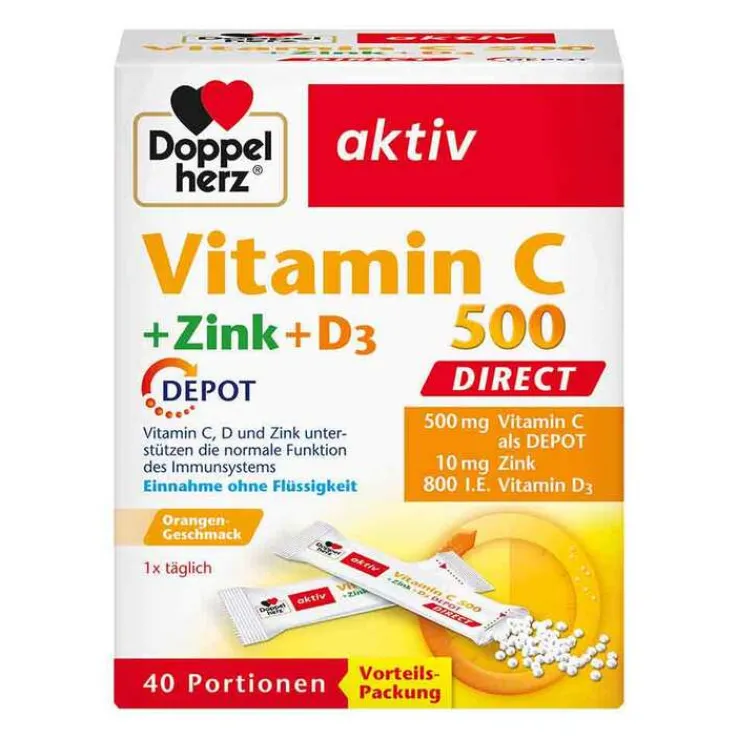Doppelherz Vitamin C 500 + Zink + D3 Depot Direct Pel., 40 St