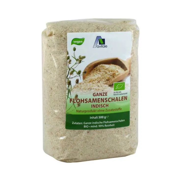 Avitale Flohsamenschalen sind reich an schleimbildenden Ballaststoffen: Pro 100 g Flohsamenschalen sind 65 g Ballaststoffe enthalten. Flohsamenschalen sind ein reines Naturprodukt ohne Zusatzstoffe. Die perfekte, tägliche Ergänzung als wertvoller Beitrag zu Ihrem Wohlbefinden!