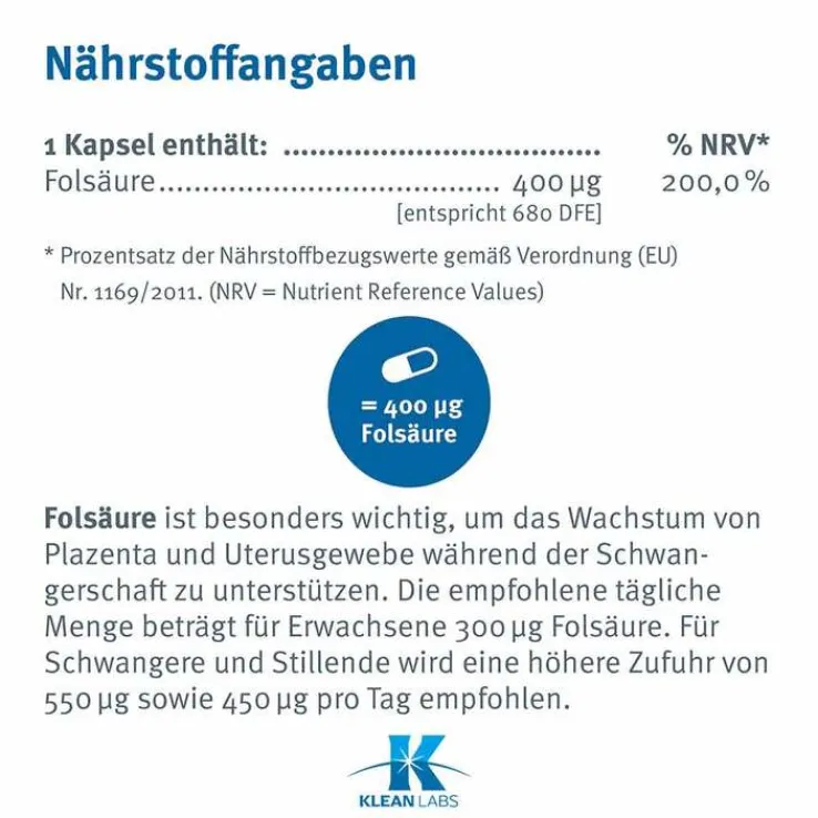 Füllstoff mikrokristalline Cellulose, Kapsel (Hydroxypropylmethylcellulose, Wasser), Folsäure, Antioxidationsmittel Ascorbylpalmitat