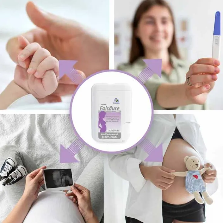 Bei Kinderwunsch oder einer bestehenden Schwangerschaft trägt eine gute Folsäureversorgung entscheidend zur Entwicklung des embryonalen Neuralrohrs bei.