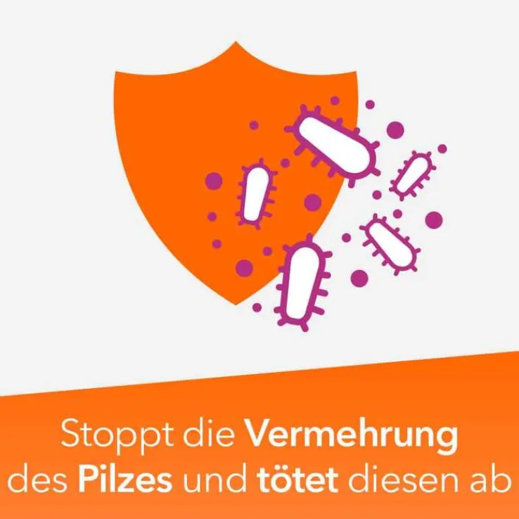 - Der Wirkstoff Clotrimazol stoppt die weitere Vermehrung des Pilzes auf der Haut und tötet diesen ab