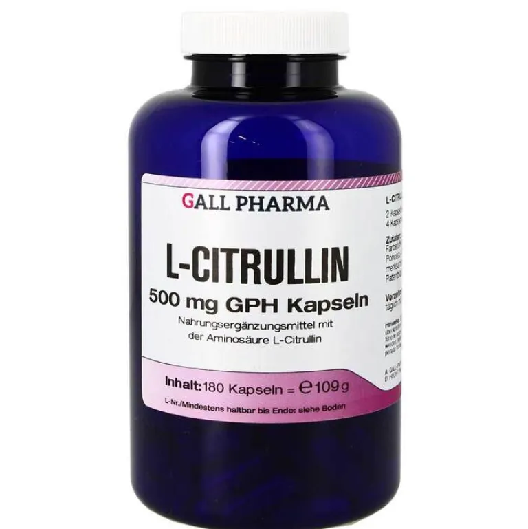 L-Citrullin 500 mg GPH Kapseln enthalten 500 mg L-Citrullin in einer Hartgelatinekapsel.