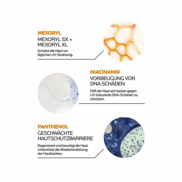 - Sehr hoher Breitbandschutz vor UVA- und UVB-Strahlen dank MEXORYL SX + MEXORYL XL Filtertechnologie.