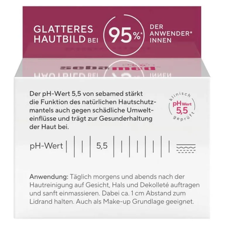 - SCHUTZ VOR UMELTEINFLÜSSEN: Unsere Anti-Aging Pflegeserie ist ganz auf ihren Schutzbedarf, ihre steigende Empfindlichkeit und ihre Tendenz zum Austrocken abgestimmt. Spezielle Anti-Aging-Wirkstoffe sorgen dafür, dass Glätte und Spannkraft länger erhalten bleiben und die Haut besser vor schädlichen, alterungsfördernden Umwelteinflüssen geschützt ist. So hilft sebamed Anti-Aging, vorzeitige Alterungsprozesse zu verzögern