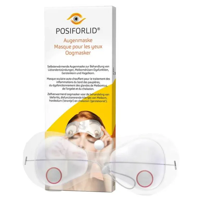 Die POSIFORLID® Augenmaske dient der einfachen und effektiven Wärmebehandlung bei Blepharitis und Meibomdrüsen-Dysfunktion. Darüber hinaus ist sie auch zur Behandlung bei Gersten- und Hagelkorn geeignet. Die zur Wärmebehandlung erforderliche Temperatur wird konstant und langanhaltend (ca. 45 °C über 10 Minuten) gehalten. Jede Augenmaske ist ca. 90-mal wiederverwendbar.