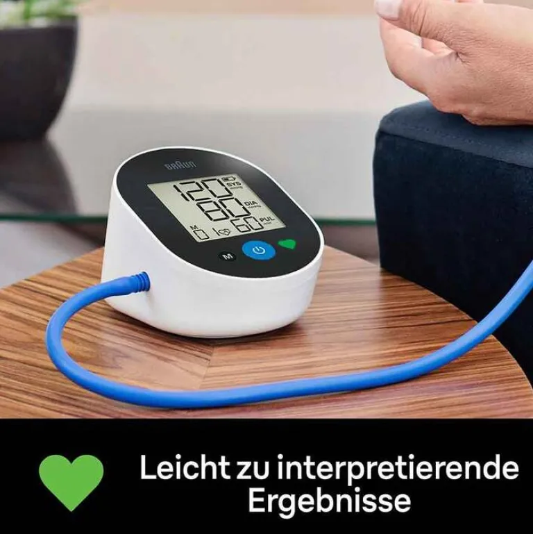 Das Braun ExactFit™ 2 Oberarm-Blutdruckmessgerät wurde mit klinisch nachgewiesener Präzision nach dem internationalen Protokoll der European Society of Hypertension entwickelt, um Ihnen genaue Messwerte zu liefern, damit Sie zu Hause die Kontrolle über Ihre Herzgesundheit selbst in die Hand nehmen können. Mit einem einfachen Knopfdruck zeigt unser großes Display schnell Ihre systolischen und diastolischen Werte sowie den Puls an. Unsere farbcodierte Anzeige kann normale bis schwere Bluthochdruckwerte interpretieren. Das Gerät ist mit einer Soft-Inflation-Technologie ausgestattet, die die Blutdruckwerte während des Aufpumpens der Manschette erkennt. So wird die regelmäßige Überwachung der Herzgesundheit für alle eine angenehme Erfahrung. Das Gerät verfügt außerdem über eine Erkennung von unregelmäßigem Herzschlag und einen Speicher, in dem bis zu 30 Messwerte gespeichert werden können.