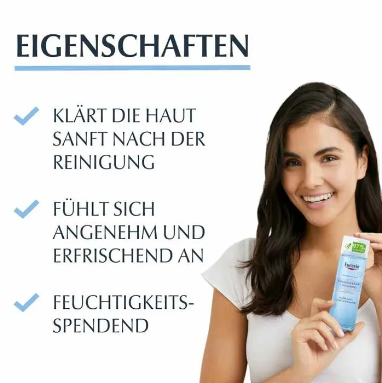 Mit dem Eucerin DermatoClean HYALURON Klärenden Gesichtswasser werden alle Spuren der vorherigen Reinigung entfernt. Die Haut wird somit sanft und effektiv auf die nachfolgende Pflege vorbereitet.