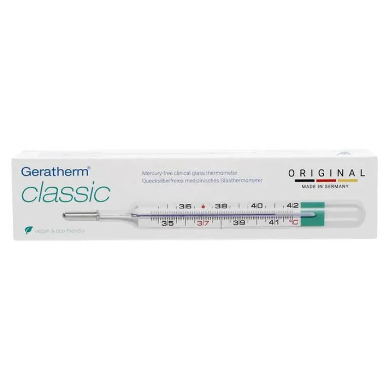 Das Geratherm® classic ist ein medizinisches Glasthermometer ohne Quecksilber zur rektalen, oralen und axillaren Messung der Körpertemperatur im Messbereich von 35,5°C bis 42,0°C. Durch den geschlossenen Glaskörper lässt es sich besonders gut desinfizieren. Zudem liegt dem Thermometer eine Rücksetzhilfe bei.
