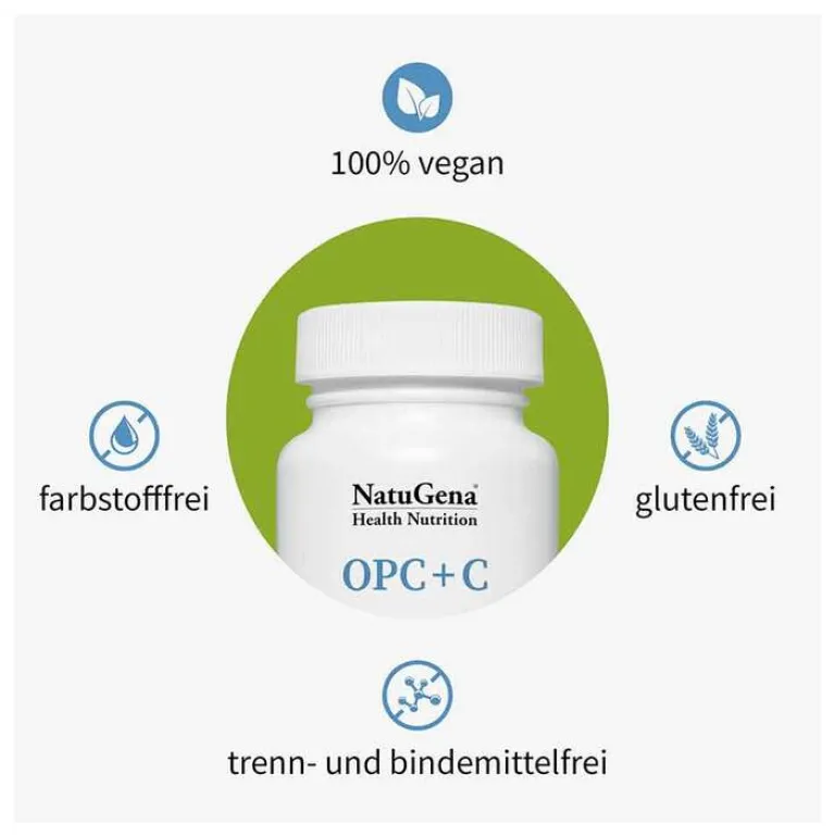 OPC+C besteht aus französischem Traubenkern-Extrakt kombiniert mit dem Co-Faktor Vitamin C aus natürlicher Hagebutte.