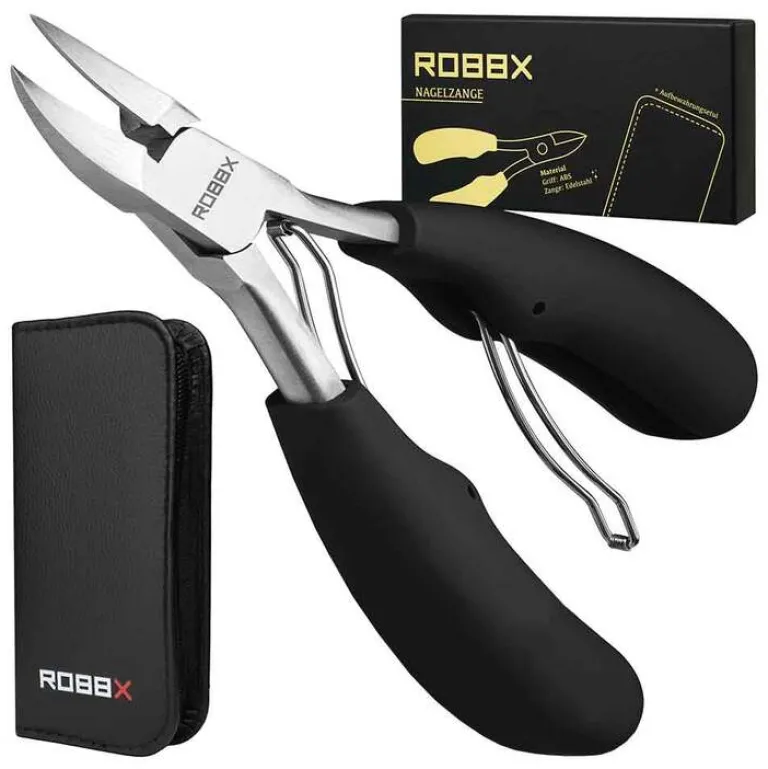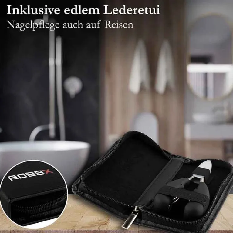 Die Robbx Profi Nagelzange ist sehr gut geeignet zur Pflege von Finger- und Fussnägeln. Die Nagelzange eignet sich sogar zum Entfernen von Nagelhaut. Sie besitzt weiche ergonomisch geformte Griffe und wird in einem stabilen Lederetui geliefert. Sie können die Nagelzange somit dekorativ im Badezimmer verwahren oder auf Reisen mitnehmen.