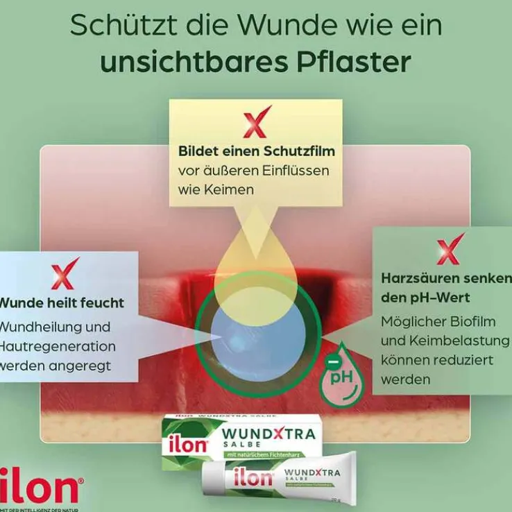 Wundheilung fördern? ilon® WundXtra schützt Wunden vor äußeren Einflüssen und unterstützt die Heilung sowohl akuter als auch langsam heilender Wunden. Pflanzlich, wirksam, sicher – mit der Kraft des nordischen Fichtenharzes.
