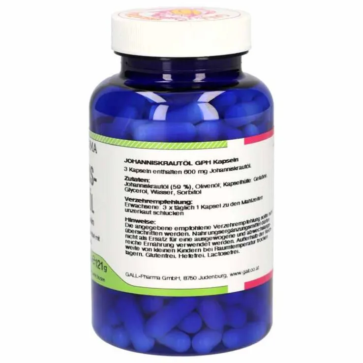 - 3 Kapseln enthalten 600 mg Johanniskrautöl