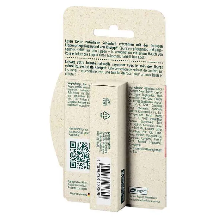 Lassen Sie Ihre natürliche Schönheit erstrahlen mit der farbigen Lippenpflege Rosewood von Kneipp. Spüren Sie ein pflegendes und angenehmes Gefühl auf Ihren Lippen für einen tollen Komfort in Kombination mit einem Hauch von Rosewood erhalten Ihre Lippen einen hübschen, natürlichen Look! Dank des einfachen Auftragens ist sie der ideale Begleiter für Sie den ganzen Tag lang.