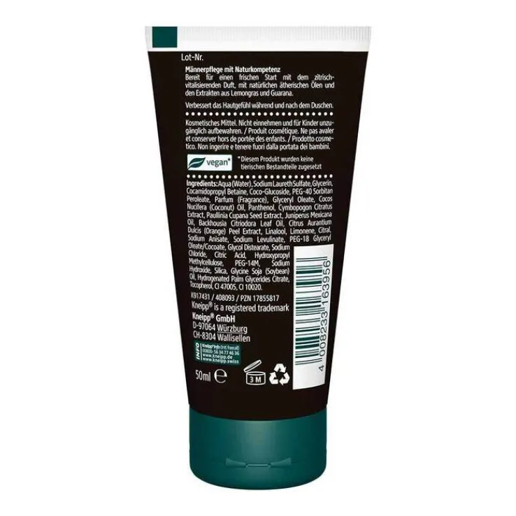 Männerpflege mit Naturkompetenz. Sind Sie bereit für einen frischen Start? Dann ist die Kneipp Men 2in1 Dusche Startklar mit dem zitrisch-vitalisierenden Duft, mit natürlichen ätherischen Ölen und den Extrakten aus Lemongras und Guarana genau das Richtige für Sie! Sie verbessert das Hautgefühl während und nach dem Duschen.