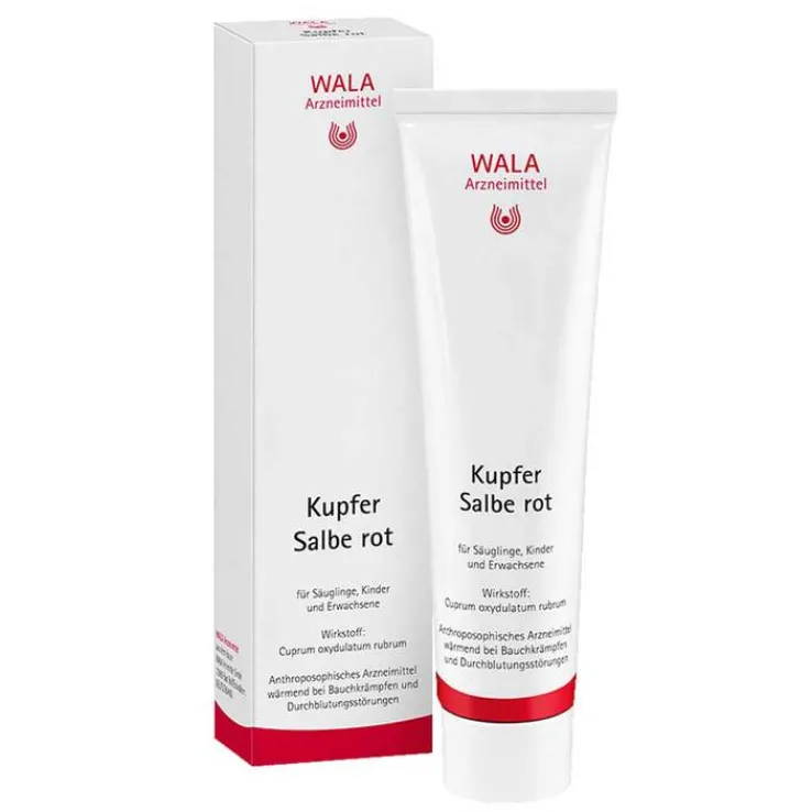 Anwendungsgebiete gemäß der anthroposophischen Menschen- und Naturerkenntnis. Dazu gehören: Harmonisierung von Integrationsstörungen des Wärmeorganismus im Kreislauf- und Stoffwechsel-Bewegungs-System. Kupfer Salbe rot mit fein pulverisiertem Kupferoxid fördert die Blutzirkulation vom Unterhautgewebe bis in die Muskulatur und wirkt auf diese Weise harmonisierend auf die Wärmeorganisation. Dadurch wird eine sanfte Wärmehülle gebildet, die leicht und jederzeit verfügbar ist. Bei krampfartigen Beschwerden wird die Salbe 1-mal täglich sanft in die schmerzhafte Region von Unterbauch und Kreuzbeingegend eingerieben.
