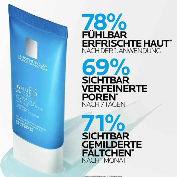 Die angenehme, ultra-leichte Gel-Textur des Feuchtigkeitsgels für das Gesicht enthält Hyaluronsäure, Vitamin B5 und Salicylsäure. Bei regelmäßiger Anwendung erscheint die Haut nach 4 Wochen geglättet und aufgepolsteter und Anzeichen von Falten wirken gemildert. Außerdem ist das Hyalu B5 Water Gel von La Roche Posay für alle Hauttypen geeignet, nicht komedogen und überzeugt zusätzlich durch Unterstützung des natürlichen Regenerationsprozesses der Hautschutzbarriere, verfeinerte Poren und einen langanhaltenden Feuchtigkeitseffekt – optimal für die tägliche Anti-Aging Pflegeroutine.