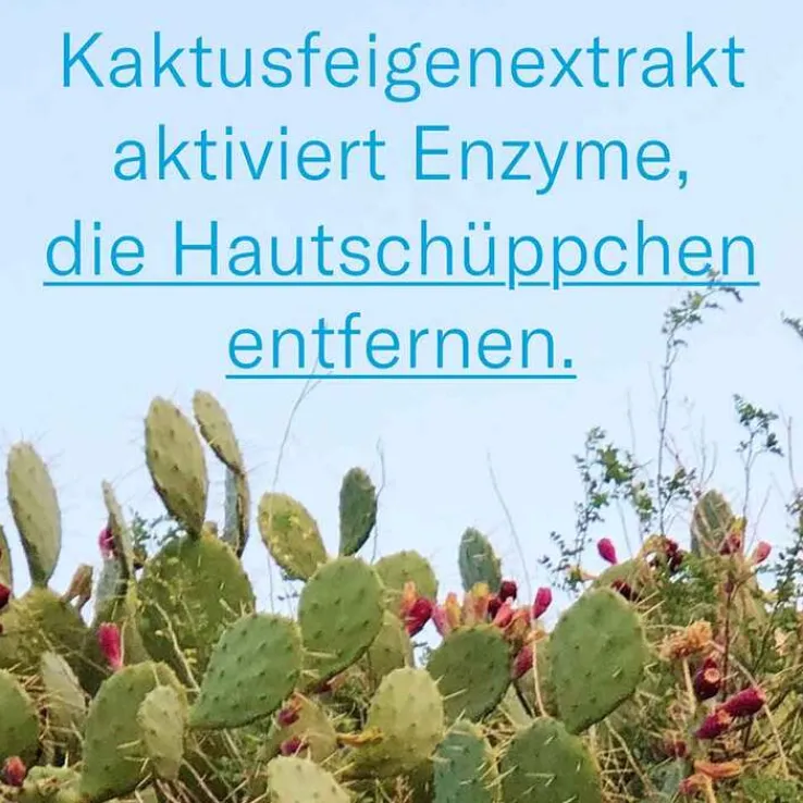 - Kaktusfeigenextrakt erhöht die Aktivität von Enzymen, die sichtbare Hautschüppchen entfernen.