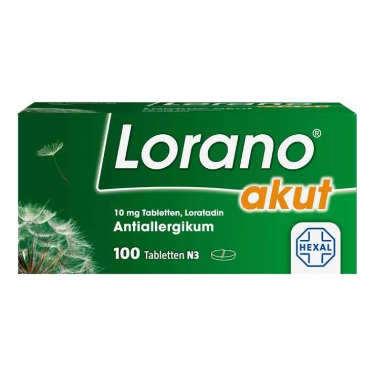 Lorano® akut, 10 mg Tabletten: Lorano® akut, 10 mg Tabletten Wirkstoff: Loratadin. Anwendungsgebiete: Zur Behandlung der Beschwerden bei allergischen Entzündungen im Inneren der Nase, z. B. Heuschnupfen, und bei chronischer Nesselsucht unbekannter Ursache. Warnhinweis: Enthält Lactose. Zu Risiken und Nebenwirkungen lesen Sie die Packungsbeilage und fragen Sie Ihre Ärztin, Ihren Arzt oder in Ihrer Apotheke! Mat.-Nr.: 2/51012340-02 Stand: Mai 2018 Hexal AG, 83607 Holzkirchen, www.hexal.de