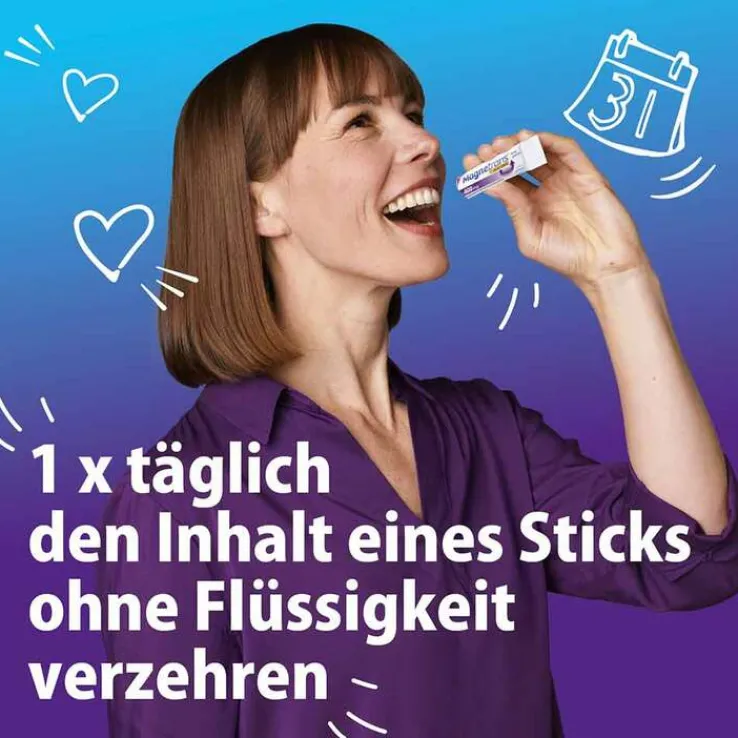 - Erwachsene und Jugendliche ab 12 Jahren: 1 x täglich den Inhalt eines Sticks ohne Flüssigkeit verzehren.
