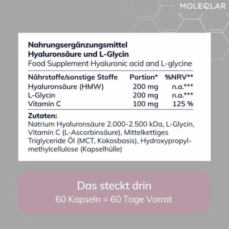 Moleqlar Longevity Hyaluron + Glycin Kapseln, 60 St