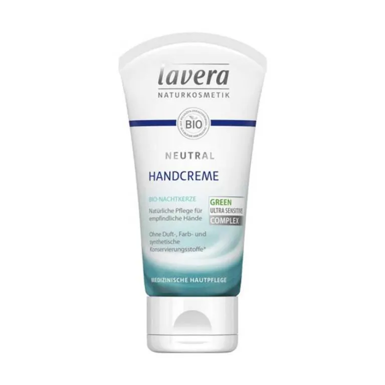 Die lavera Neutral Handcreme mit Bio-Nachtkerze und Bio-Sheabutter zieht schnell ein und pflegt irritierte Haut intensiv mit Feuchtigkeit.