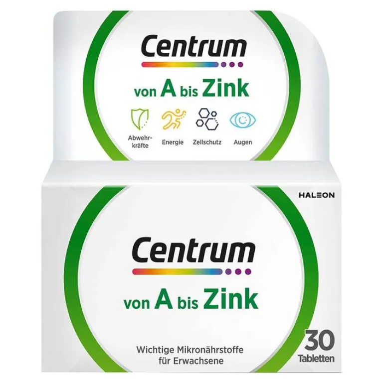 Die Centrum Nährstoff-Formel Von A bis Zink enthält alle lebensnotwendigen Vitamine sowie wichtige Mineralstoffe und Spurenelemente in einem ausgewogenen Verhältnis – zur optimalen Ergänzung Ihrer täglichen Ernährung. Mit nur einer Tablette pro Tag decken Sie den Tagesbedarf vieler Vitamine, Mineralstoffe und Spurenelemente.