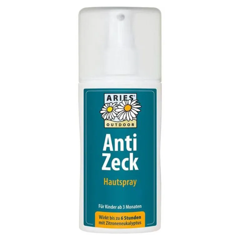 Das ARIES® Anti Zeck ist ein zeckenabwehrendes Hautspray mit einem Wirkstoff, der aus den Blättern des Zitronen-Eukalyptusbaums gewonnen wird. Zecken werden bis zu 6 Stunden ferngehalten.