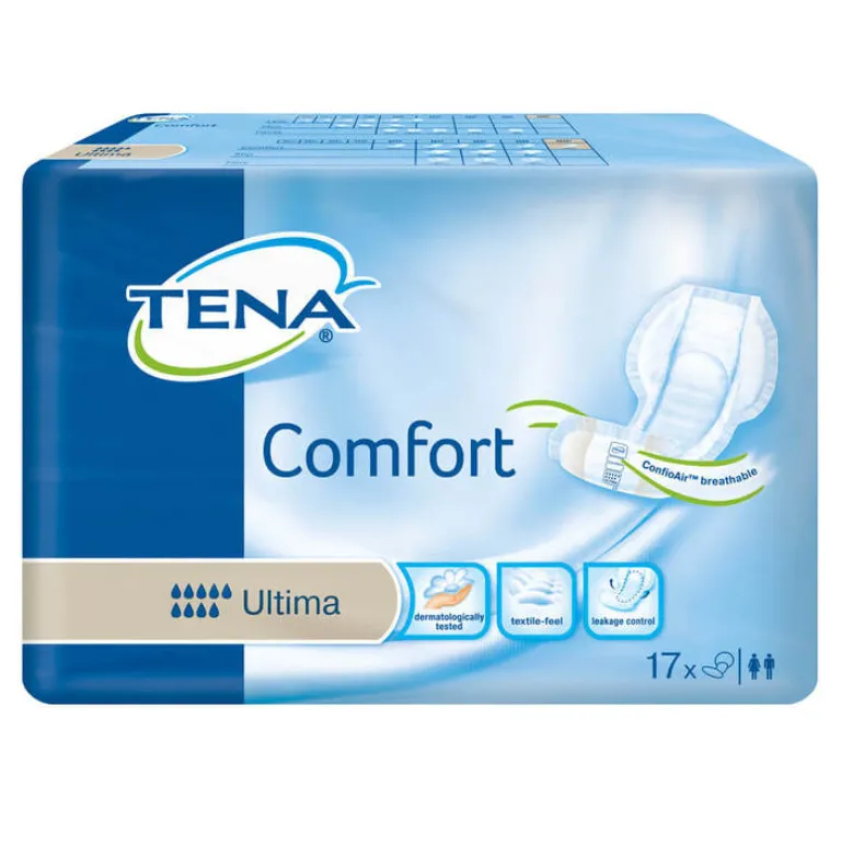 TENA Comfort Ultima mit ConfioAir ist vollständig atmungsaktiv und zum Schutz der Haut dermatologisch getestet – bestens geeignet für Ihren Angehörigen. Die anatomische Form, Auslaufbarrieren und maximale Saugstärke sorgen für sicheren Auslaufschutz. Dank des textilähnlichen Materials fühlen sie sich angenehm weich auf der Haut an.