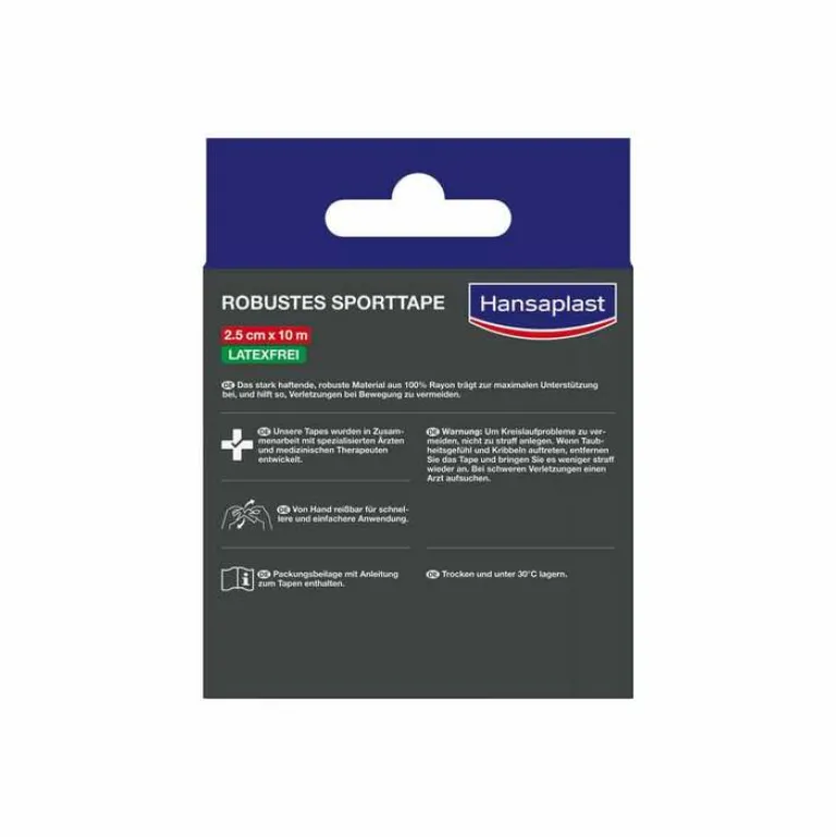 Das Hansaplast Robuste Sporttape ist ein robustes Tapes, welches Gelenke bei intensiven physischen Aktivitäten unterstützt. Es ist effektiv sowohl in der Vorbeugung von Verletzungen sowie in der Unterstützung bei Verletzungen. Das Robuste Sporttape schränkt die Beweglichkeit der Gelenke und Sehnen ein, um neue oder erneute Verletzungen unter hohem Druck zu vermeiden. Das Tape ist so aufgebaut, dass es so stabil wie möglich ist, um bestmöglich zu unterstützen.