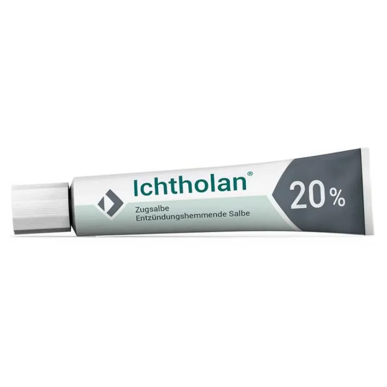 Ichtholan® Zugsalbe 20%. Wirkstoff: Ammoniumbituminosulfonat Anwendungsgebiete: Zur Reifung von Furunkeln und oberflächlich abszedierenden Prozessen, z. B. Nagelbett-, Haarbalg-, Schweißdrüsen-Entzündungen, Entzündungen durch Splitter und Dornen. Enthält Wollwachs und Butylhydroxytoluol. Zu Risiken und Nebenwirkungen lesen Sie die Packungsbeilage und fragen Sie Ihre Ärztin, Ihren Arzt oder in Ihrer Apotheke. Ichthyol-Gesellschaft Cordes, Hermanni & Co. (GmbH & Co.) KG, 22335 Hamburg