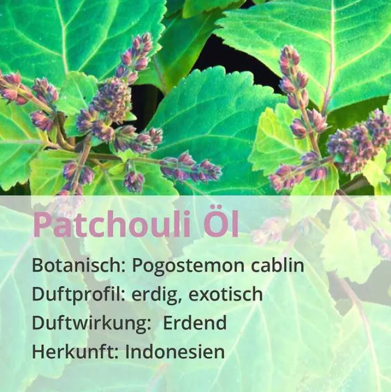 Patchouli (Pogostemon cablin) ist ein ganz besonderer, würziger-aromatischer Duft, bekannt aus edlen Parfümerien und gibt jeder Aromamischung einen sinnlich-geheimnisvollen Charakter. Patchouli wird gern in feinen Cremes, Lotionen und Bädern verwendet.