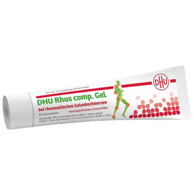 DHU Rhus comp. GelEnthält 15 Vol.-% Alkohol. Packungsbeilage beachten! Anwendungsgebiete: Die Anwendungsgebiete leiten sich von den homöopathischen Arzneimittelbildern ab. Dazu gehören: Rheumatische Schmerzen in den Gelenken. Zu Risiken und Nebenwirkungen lesen Sie die Packungsbeilage und fragen Sie Ihre Ärztin, Ihren Arzt oder in Ihrer Apotheke. Deutsche Homöopathie-Union DHU-Arzneimittel GmbH & Co. KG, Karlsruhe (Stand: Sept. 2019)