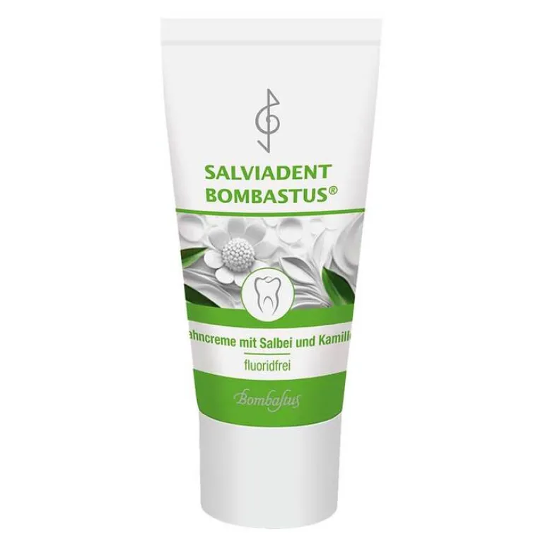 Salviadent Bombastus ist eine Zahncreme mit Salbei und Kamille. Sie entfernt Zahnbelag schonend und gründlich. Natürliche Pflanzenextrakte tragen zur Gesunderhaltung des Mundraumes bei und sorgen für ein frisches, sauberes Mundgefühl. Regelmäßiges Zähneputzen beugt Zahnfleischbluten vor. Das enthaltene Zink hilft dabei, Plaque, Zahnstein sowie Zahnfleischreizungen zu reduzieren. Salviadent Bombastus enthält kein Fluorid.