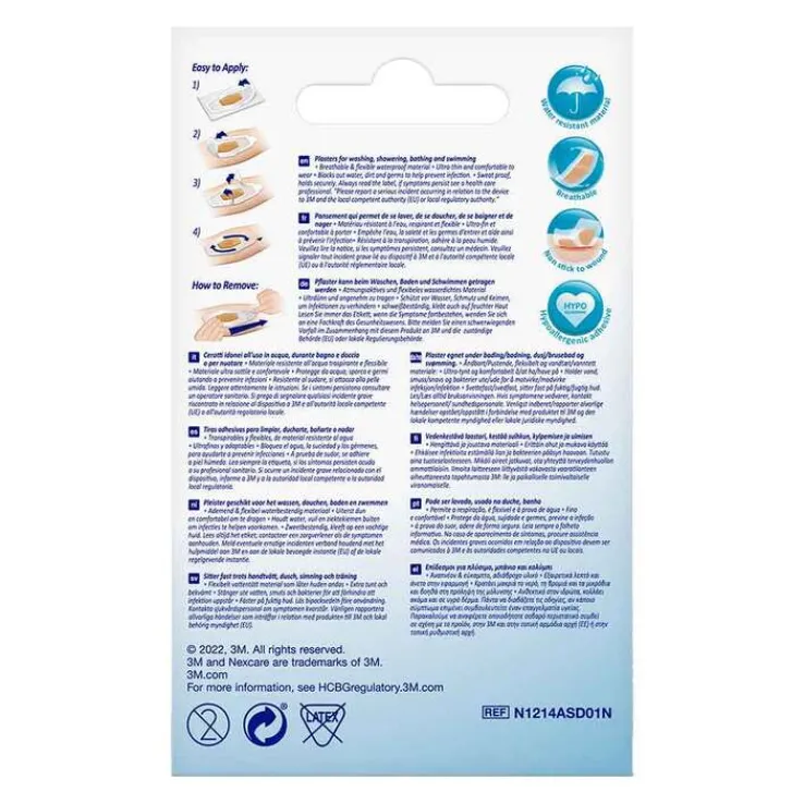 Ultradünne, atmungsaktive Konstruktion mit Rundumabdichtung, die vor Wasser, Schmutz und Keimen schützt und so Infektionen vorbeugt. Diese aus einem dünnen, transparenten Trägermaterial und einer nicht haftenden Wundauflage gefertigten Pflaster haften bis zu 12 Stunden und bieten ganztägigen Tragekomfort.