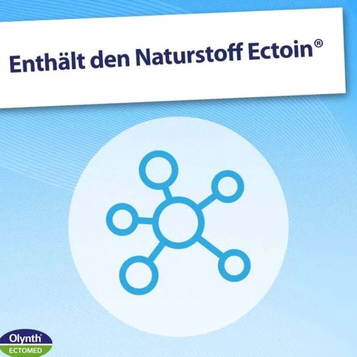 Das sanft abschwellende Nasenspray von Olynth® Ectomed kann zur Behandlung einer verstopften Nase sowie trockener und gereizter Nasenschleimhäute angewendet werden. Es befeuchtet und beruhigt die gereizten Nasenschleimhäute. Die hypertone Lösung hilft, die Nase sanft abzuschwellen, da das Produkt mit seinem osmotischen Effekt einen Ausgleich der überschüssigen Flüssigkeit in der Nasenschleimhaut bewirkt. Der Naturstoff Ectoin® bildet einen luftdurchlässigen Hydrofilm auf der Nasenschleimhaut und hilft sie so zu beruhigen und zu befeuchten und die körpereigene Schutzbarriere zu unterstützen.