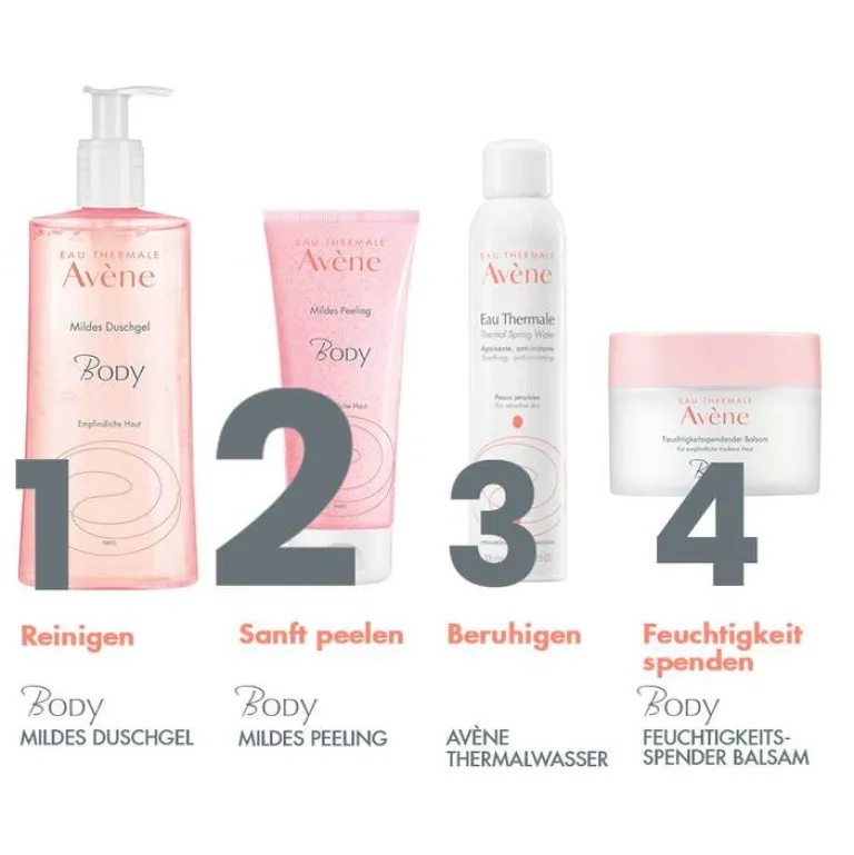 Das Milde Peeling entfernt sanft Schmutz und überschüssige Hautschüppchen am Körper. Cellulose- und Jojobawachs-Perlen peelen die Haut sanft, aber effektiv. Es enthält außerdem einen beruhigenden Aktivstoff-Komplex aus Avène Thermalwasser und 3 wertvollen, pflanzlichen Ölen (Shea, Leindotter, Färberdistel).