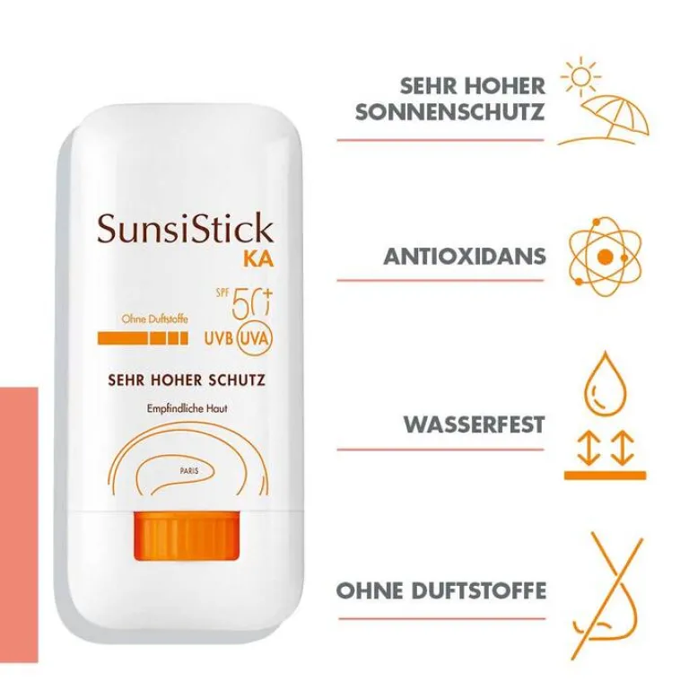 Der Avene Sunsi Stick ist verfügt über einen sehr hohen Sonnenschutz mit antoxidativem Schutzkomplex für empfindliche Hautpartien. Er eignet sich für Hautpartien im Gesicht und am Körper, die besonders der Sonne ausgesetzt sind und zu aktinischer Keratose neigen.
