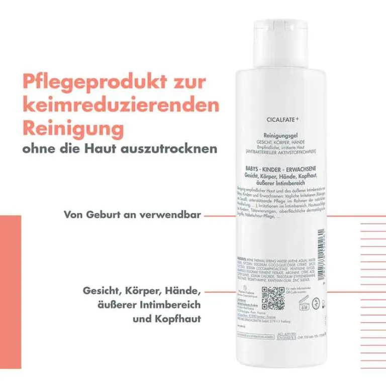 Das Avene Cicalfate+ Reinigungsgel ist ein Pflegeprodukt zur keimreduzierenden Reinigung empfindlicher, irritierter Haut, das die Haut durch seine Aktivstoffkombination beruhigt und die natürliche Hautregeneration unterstützt.
