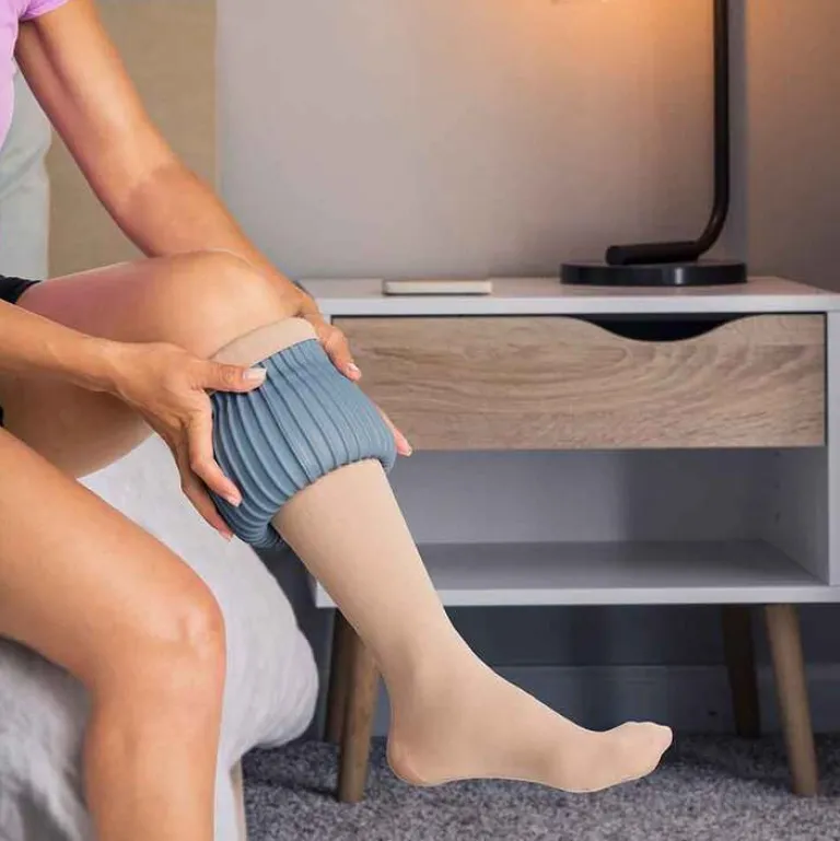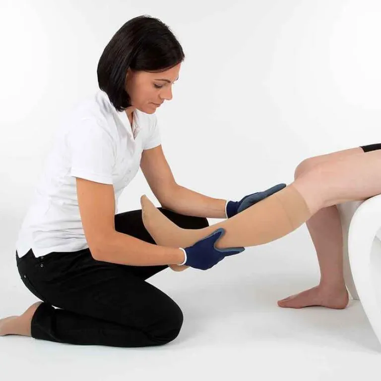 - Lässt Kompressionsstrümpfe schmerzfrei über Wunden, Narben und offene Beine gleiten