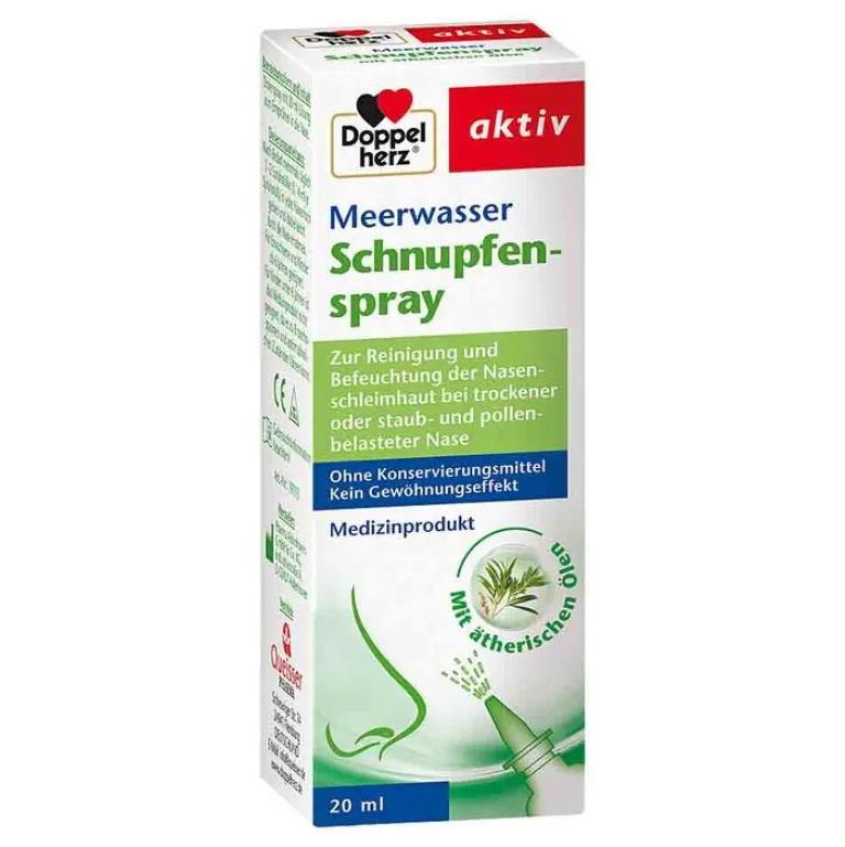 Das Doppelherz Meerwasser Schnupfenspray ist mit seinem feinen Sprühnebel eine sanfte Hilfe für Nasenhöhlen, -nebenhöhlen und die empfindliche Nasenschleimhaut, aber auch zur therapiebegleitenden Behandlung der oberen Atemwege.