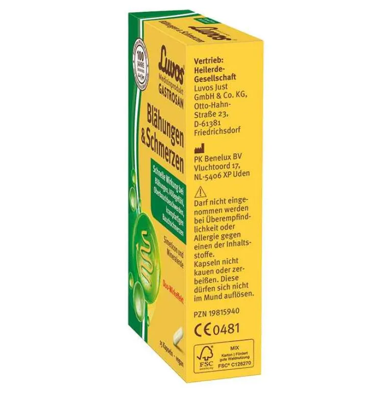 Gasbildung und Blähungen stellen ein häufiges Problem dar und können unangenehm und schmerzhaft sein. Luvos® GASTROSAN Blähungen & Schmerzen enthält Simeticon und natürliche Mineralerde. Diese Stoffe werden nicht vom Darm aufgenommen.