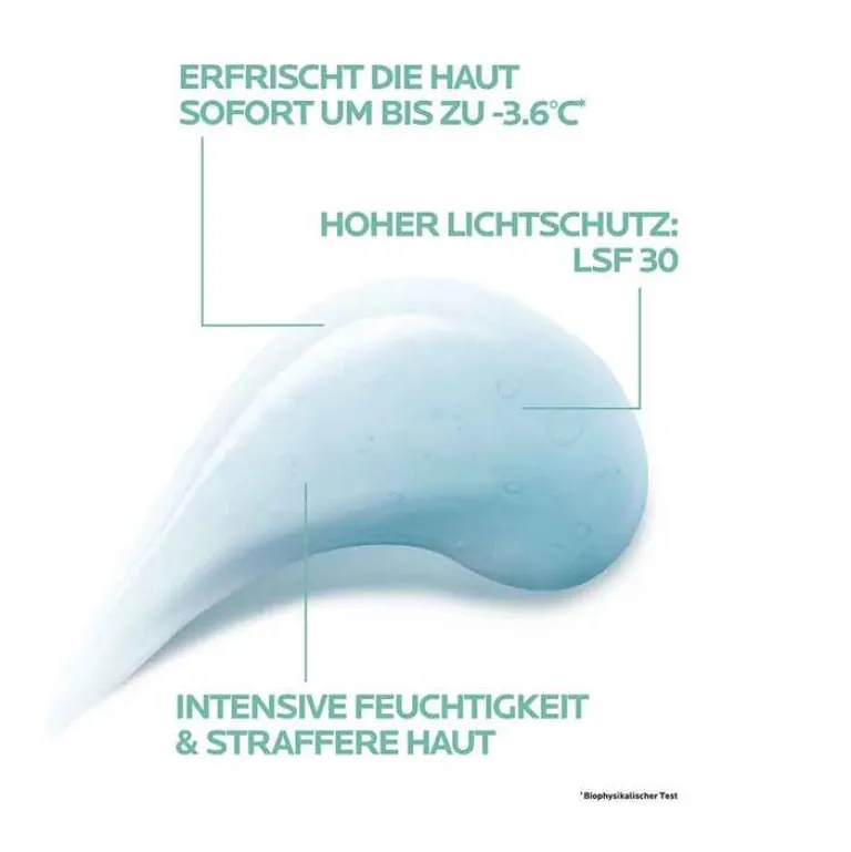 Die reichhaltige Formel mit Hyaluronsäure, Thermalwasser und antioxidativem Vitamin B5 wirkt aufpolsternd und regenerierend. Die angenehme, transparente Gel-Textur versorgt die Haut intensiv mit Feuchtigkeit und kühlt sie zudem um bis zu -3,6 Grad C ¹ nach 2 Minuten. Die Feuchtigkeitspflege mit UV-Schutz bildet die ideale Vorbereitung der Haut auf das Make-up, kann aber auch allein oder über dem Hyalu B5 Serum aufgetragen werden.