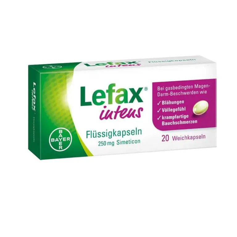 Lefax® intens eignet sich bestens bei Blähungen mit intensiveren gasbedingten Beschwerden wie Druckgefühl und krampfartigen Bauchschmerzen und ist dabei sehr gut verträglich. Schnell und zuverlässig entfaltet Lefax® intens seine Wirkung rein lokal im Magen-Darm-Trakt. Es löst Gasbläschen auf, die während der Verdauung entstehen und die unangenehmen Beschwerden hervorrufen.
