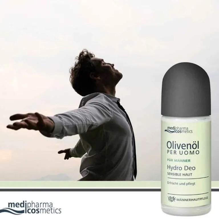 Im hektischen Alltag ist es für Männer besonders wichtig, sich auf ein Deodorant verlassen zu können, das nicht nur Schutz bietet, sondern auch die Haut pflegt. Das Olivenöl Per Uomo Hydro Deo von medipharma cosmetics erfüllt genau diese Anforderungen. Schutz & Pflege als Roll-On – für sensible Haut.