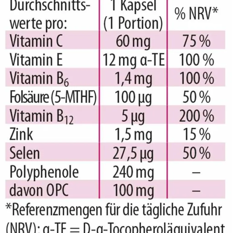 - Mit Polyphenolen aus Pinienrinde, Grüntee und Traubenkernextrakt